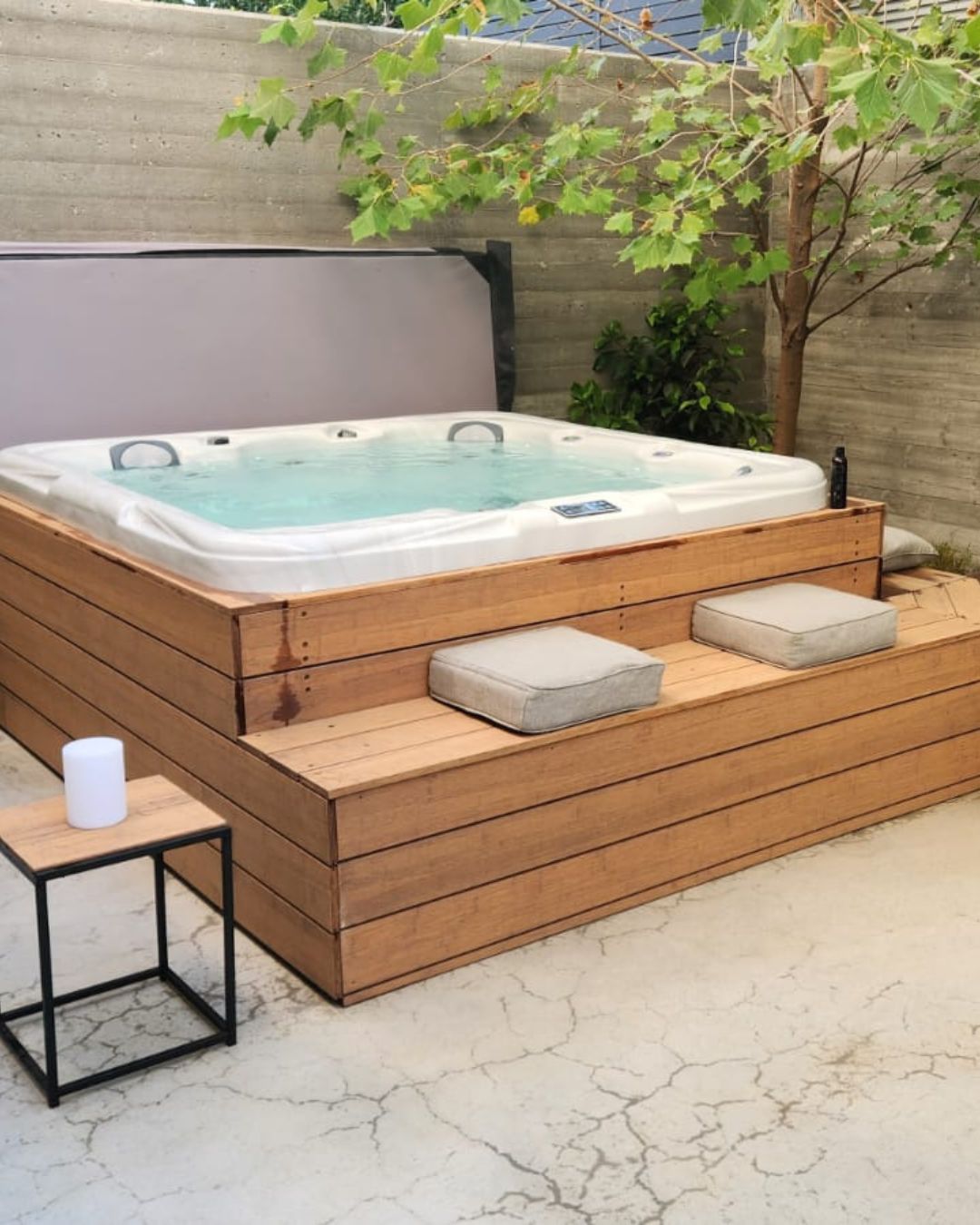חיפויי ג׳קוזי בחצר או במרפסת עם מגוון חומרים ועיצובים בהתאמה אישית.